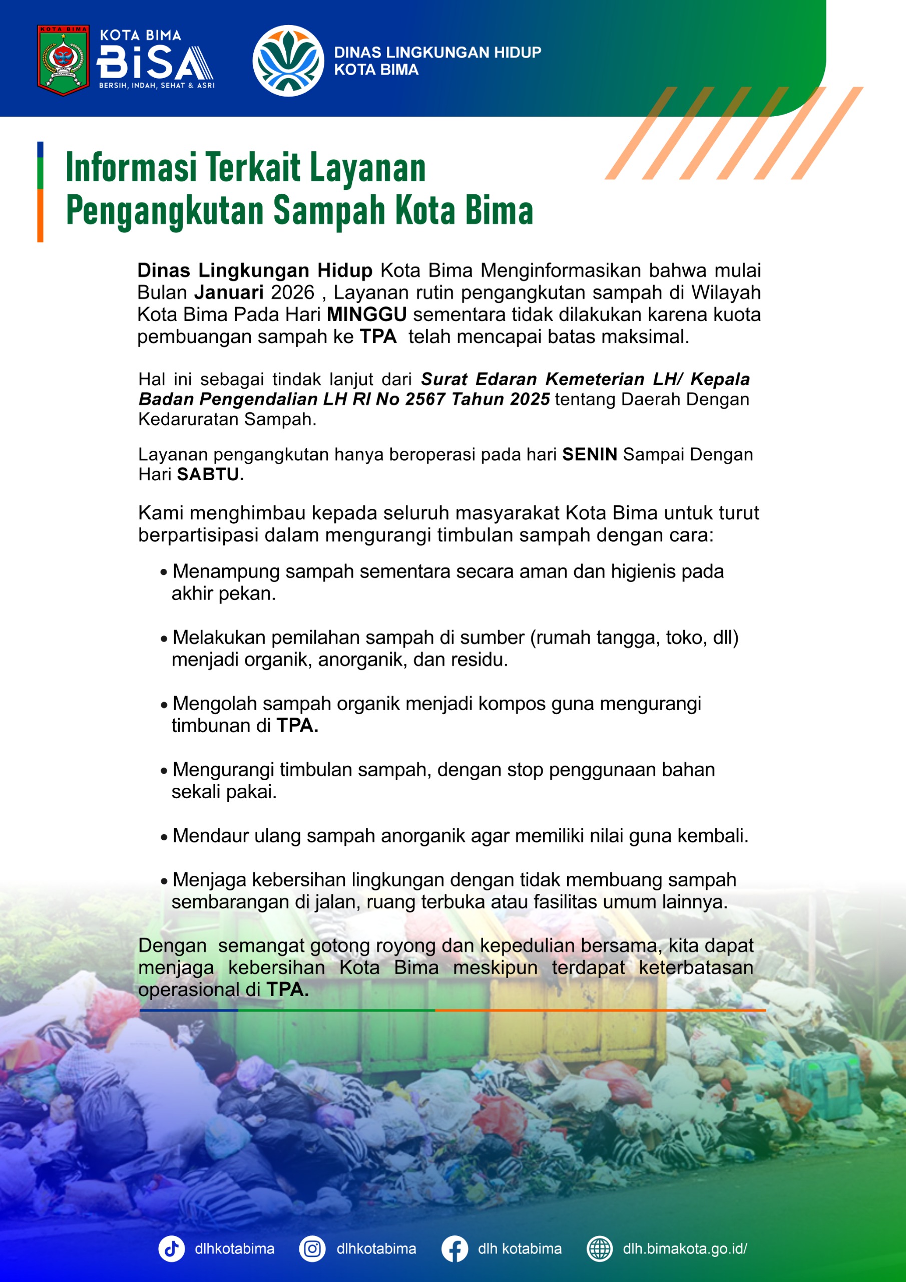 Informasi Layanan Pengangkutan Persampahan Kota Bima