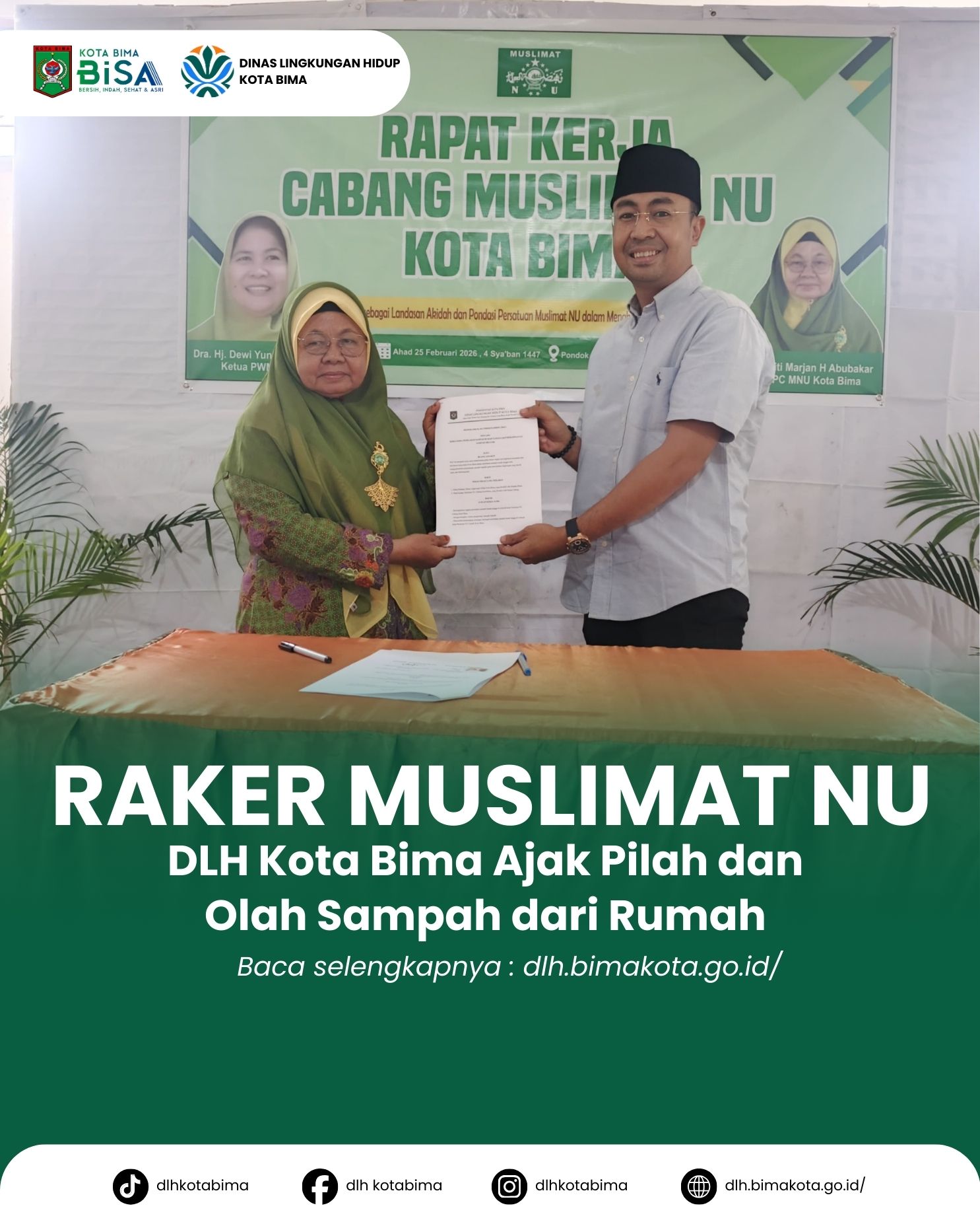 Kota Bima, Sabtu 25 Januari 2026 – Kepala Dinas Lingkungan Hidup (DLH) Kota Bima Syahrial Nuryadin, S.IP., M.M menghadiri kegiatan Musyawarah Kerja Muslimat NU Cabang Kota Bima. Kegiatan ini menjadi ruang strategis untuk memperkuat sinergi antara pemerintah daerah dan organisasi kemasyarakatan dalam upaya pengelolaan lingkungan, khususnya pengelolaan sampah rumah tangga.